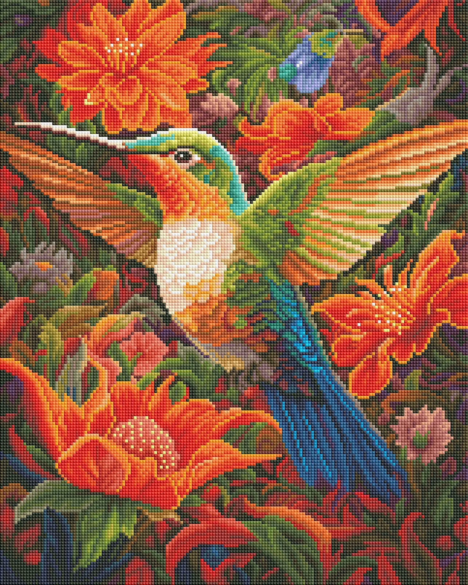 Diamond Painting Vogel - Kolibri met Bloemen - Dieren - Volledig Dekkend